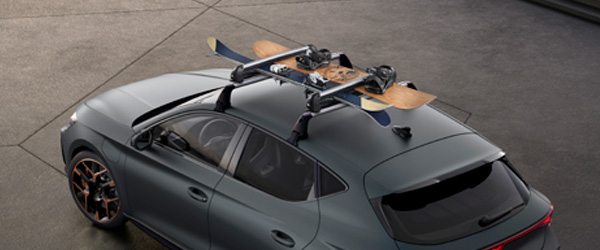 Der Ski- und Snowboardträger von Seat und Cupra transportiert sicher bis zu 6 Paar Ski oder 4 Snowboards, schützt die Ausrüstung mit weichen Gummipads und bietet einfache Handhabung auf dem Grundträger.